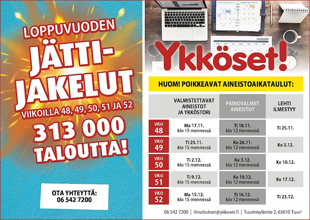 Aineistoaikataulut ja suurjakelut viikoilla 48-52