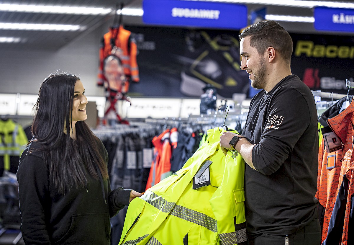 Myymäläkuvassa laadukkaat työvaatteet löytävät ostajansa.