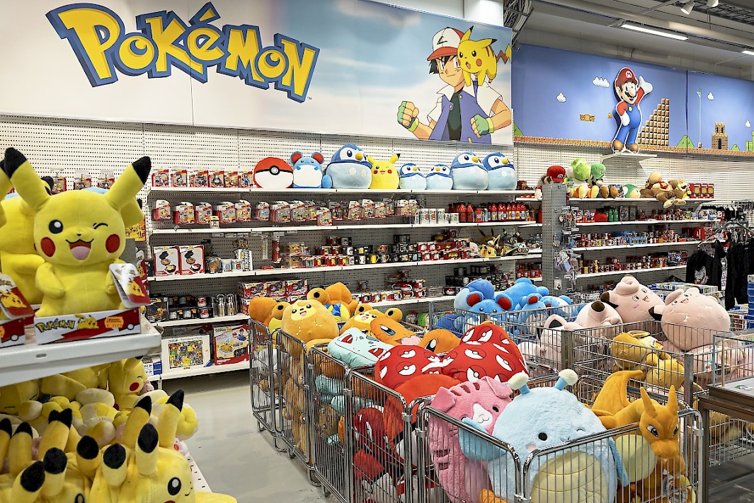 Kyläkaupassa on Suomen suurin valikoima erilaisia peli-, elokuva-, TV-sarja- ja bändituotteita, kuten esimerkiksi suosittuja Pokemon ja Super Mario -oheistuotteita.
