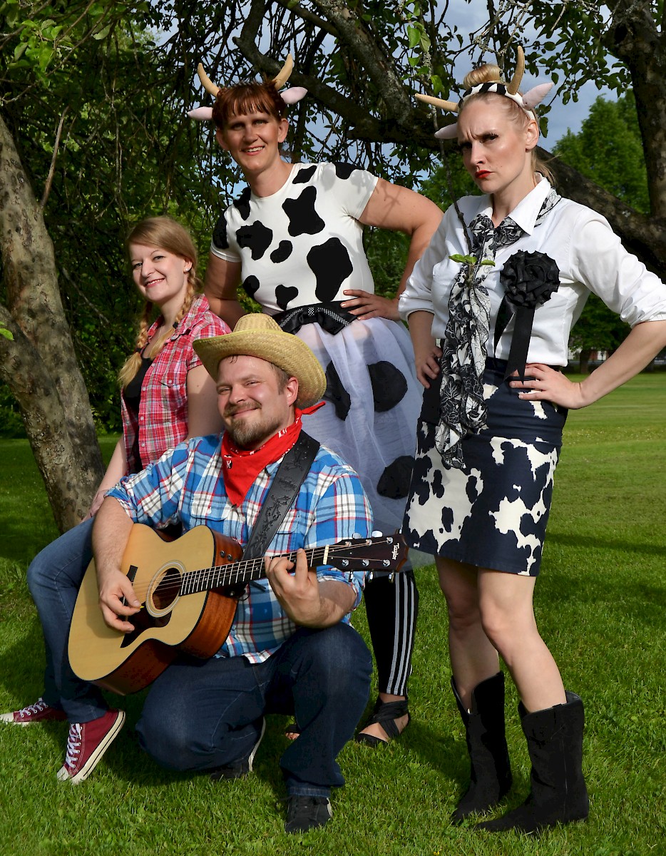 Tämän vauhdikkaan näytelmän on kirjoittanut Mervi Heikkilän lehmärunojen innoittamana Laura Kivimäki ja runot lauluiksi on säveltänyt Tero Heinämäki. Ohjauksesta ja lavastuksesta vastaa Tero Heinämäki, puvustuksesta Mari Kela. Rooleissa nähdään Laura Kivimäki, Heidi Ylinen, Tero Heinämäki ja Eeva Kurssi.