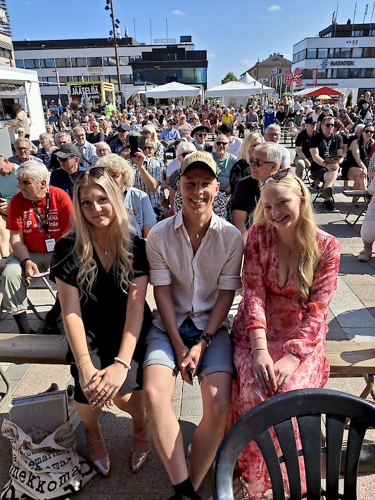 Satumaa- ja tangoseniori-laulukilpailujen esikarsinnat alkavat Keskisen Kyläkaupalta lauantaina 31.1.2026. Kuvassa tangojuniori-voittaja 2008 Aleksi Yli-Sissala ja tangonuori-voittajat Tiuku Suomi ja Eveliina Eloranta kesällä 2025.