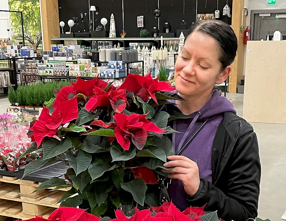 Kyläkaupan joulukukkamyynti palvelee asiakkaita Pihamyymälässä.