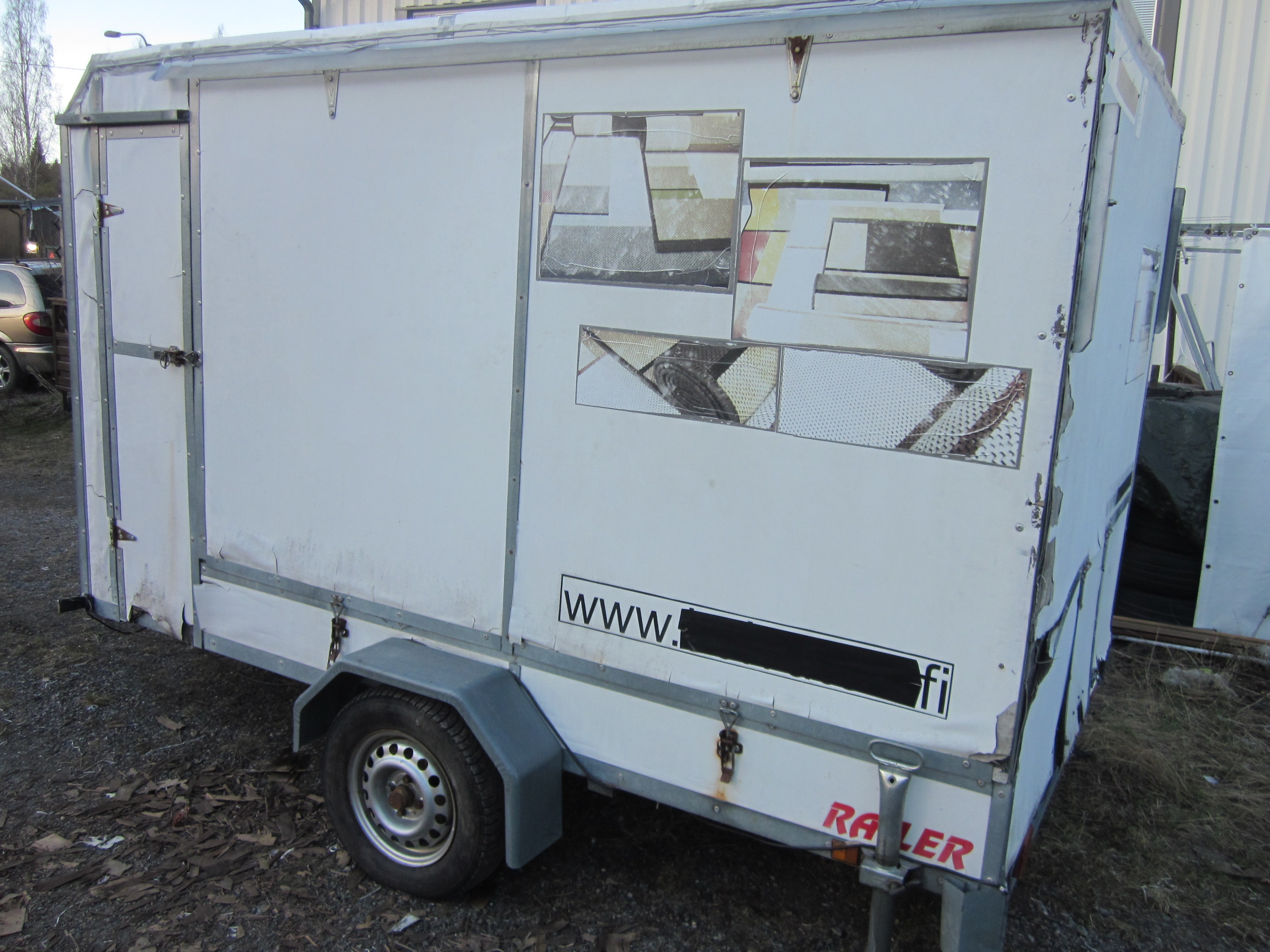 EWS-Trailer -11 sinkitty. 750 kg Lev 180 x 300 x 180 cm,kippi katos 4x4m,Kattopahvi uusittava. Lapua H 1300 €